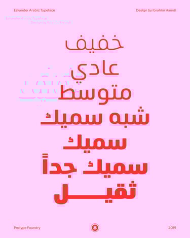 Eskander the first version designed at 2018, and re-designed at 2021. Eskander typeface family comprises 7 weights, ranging from Light to Heavy.