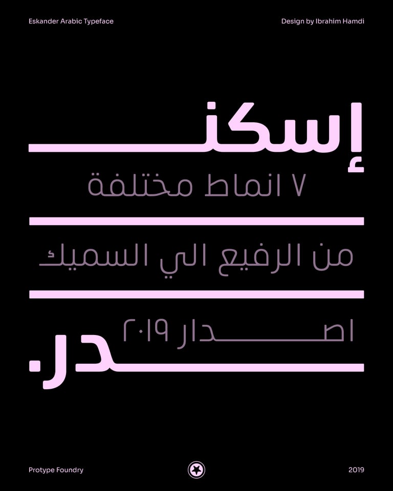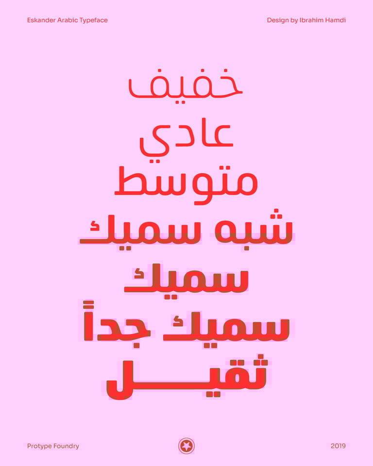 Eskander is Arabic typeface with rounded edges and friendly. For web, digital applications and prints, supported languages (Arabic, Persian and Urdu). Eskander is a trademark of Protype Foundry Ltd.